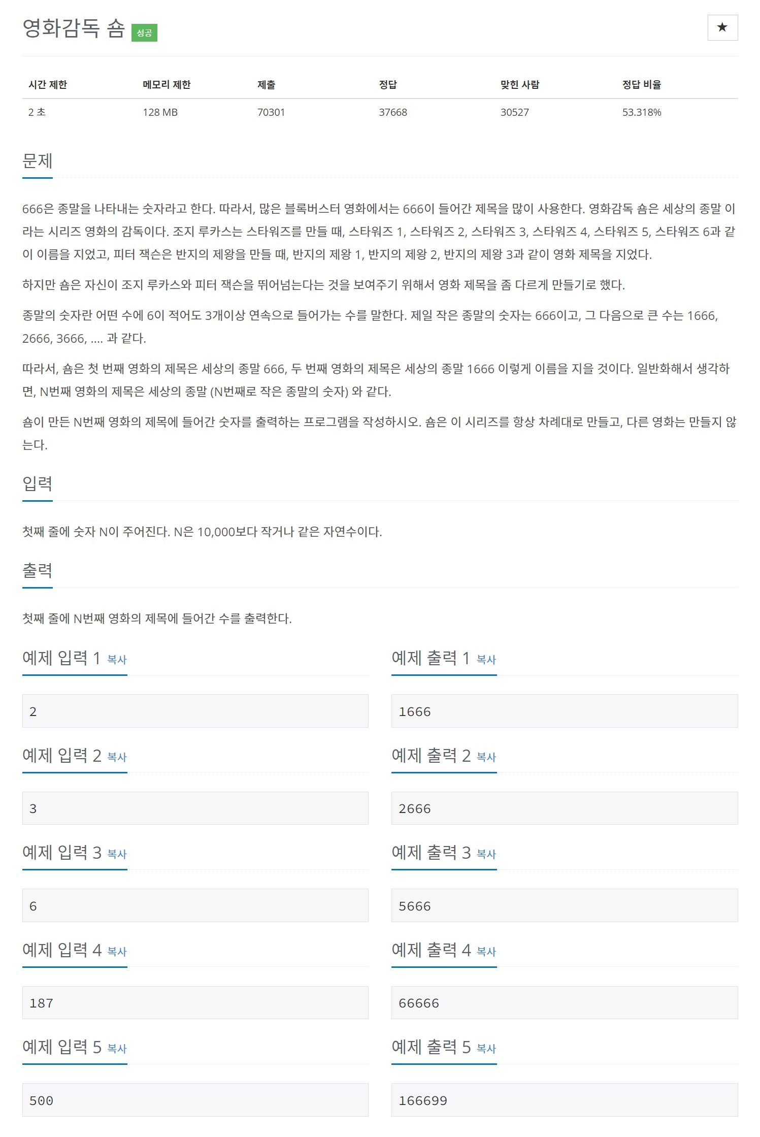 몇번째로 666이 포함된 숫자인지 찾는 문제이다.