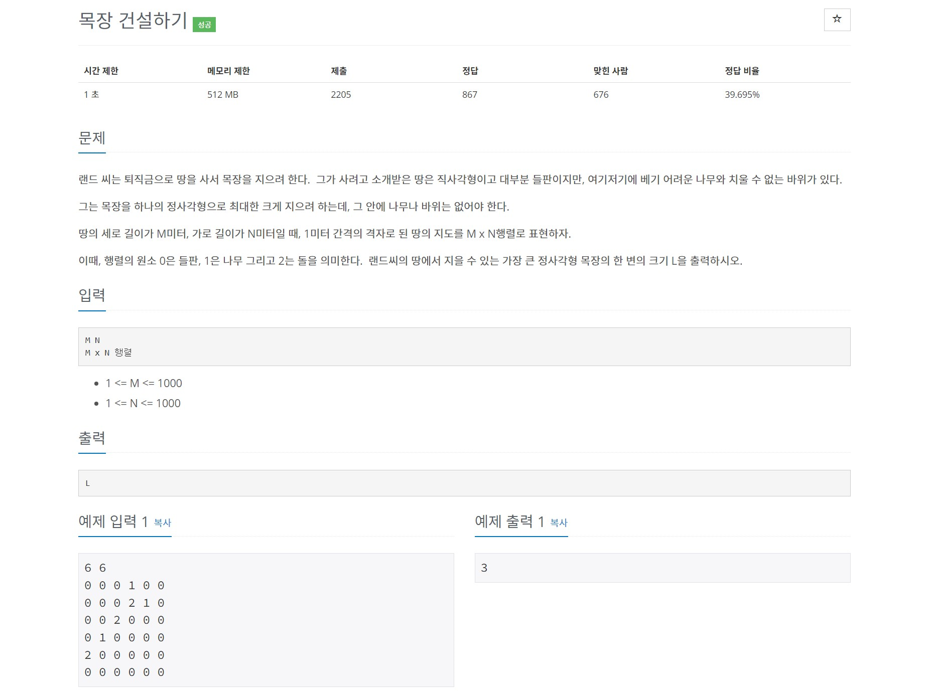 - 건설이 가능한 좌표가 나왔으면 해당위치에서 (-1, 0), (-1, -1), (0, -1)의 dp 중 최솟값을 선택하고 1을 더한 값으로 저장한다.