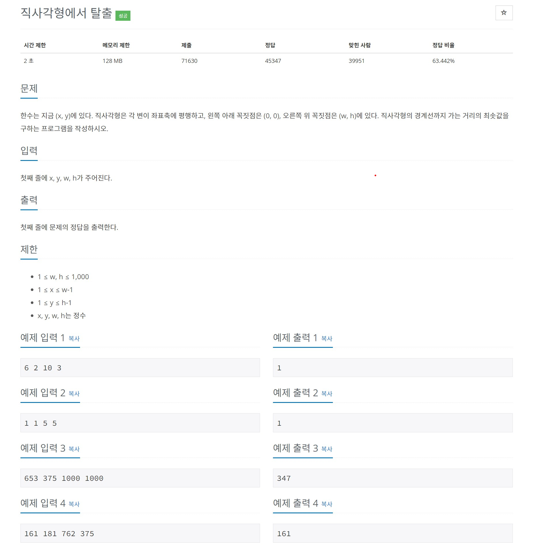 1085번: 직사각형에서 탈출
