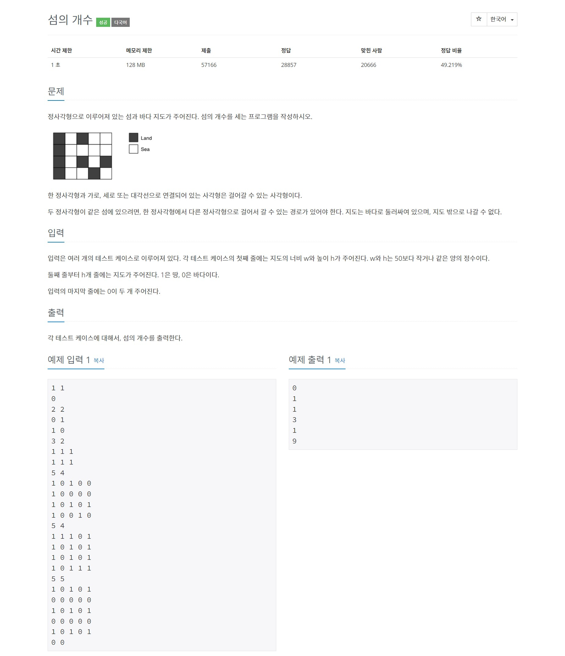 섬의 시작이 어디부터인지 몰라서 8방으로 진행했다.