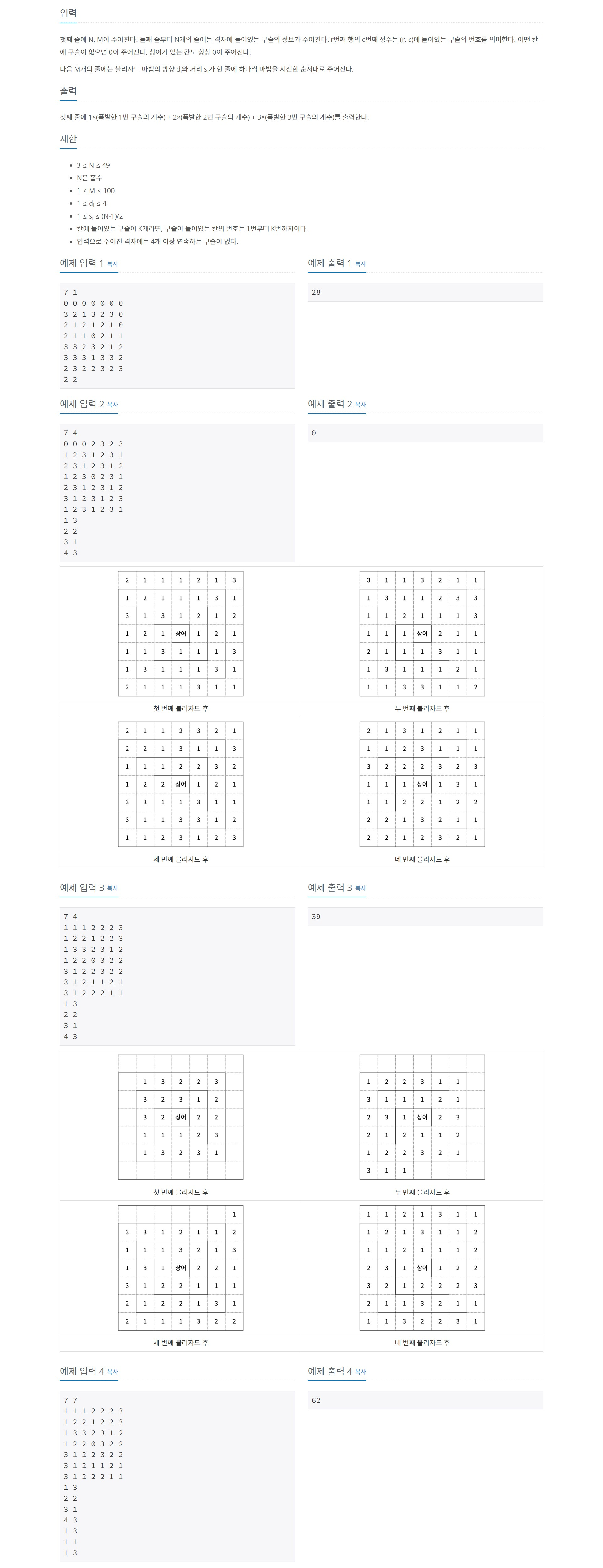 21611번: 마법사 상어와 블리자드