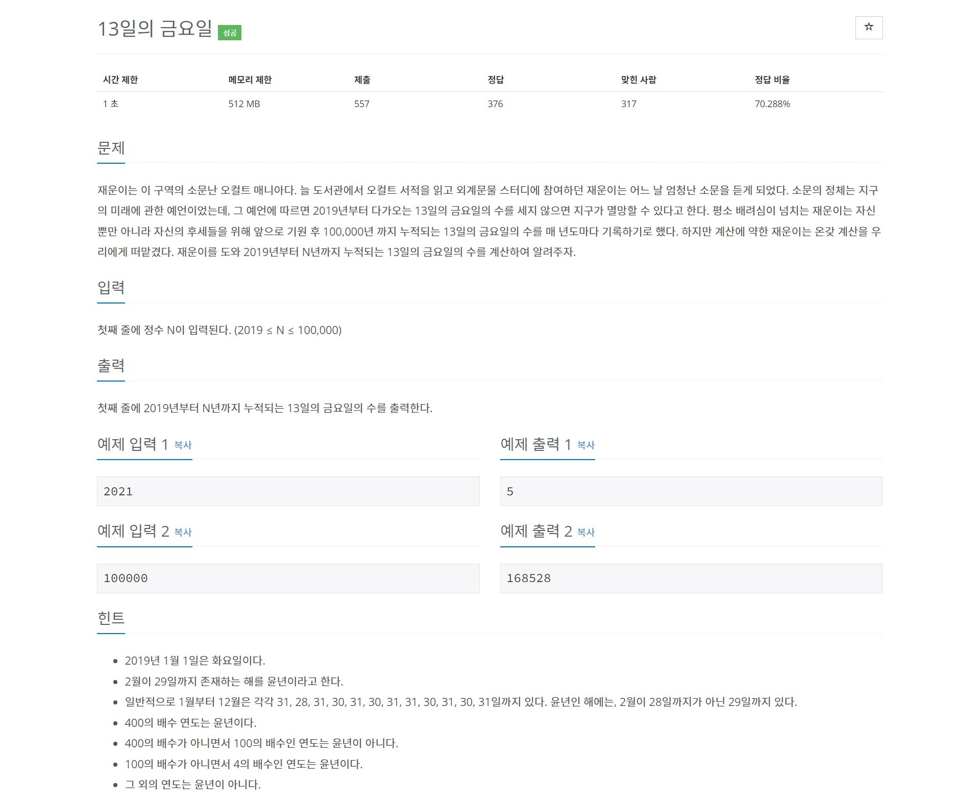 2. N년까지 가면서 처음에 13일로 시작한 날짜가 금요일인지 판단한다.