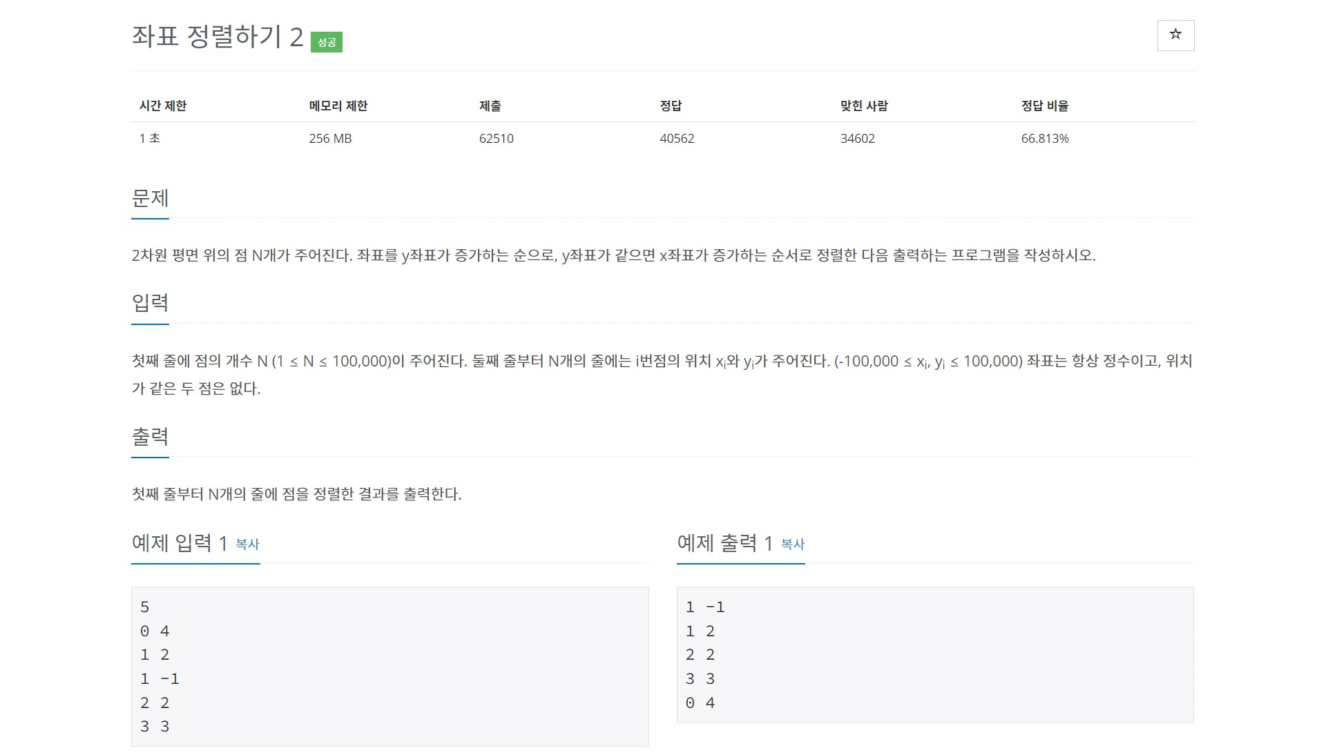 11651번: 좌표 정렬하기 2