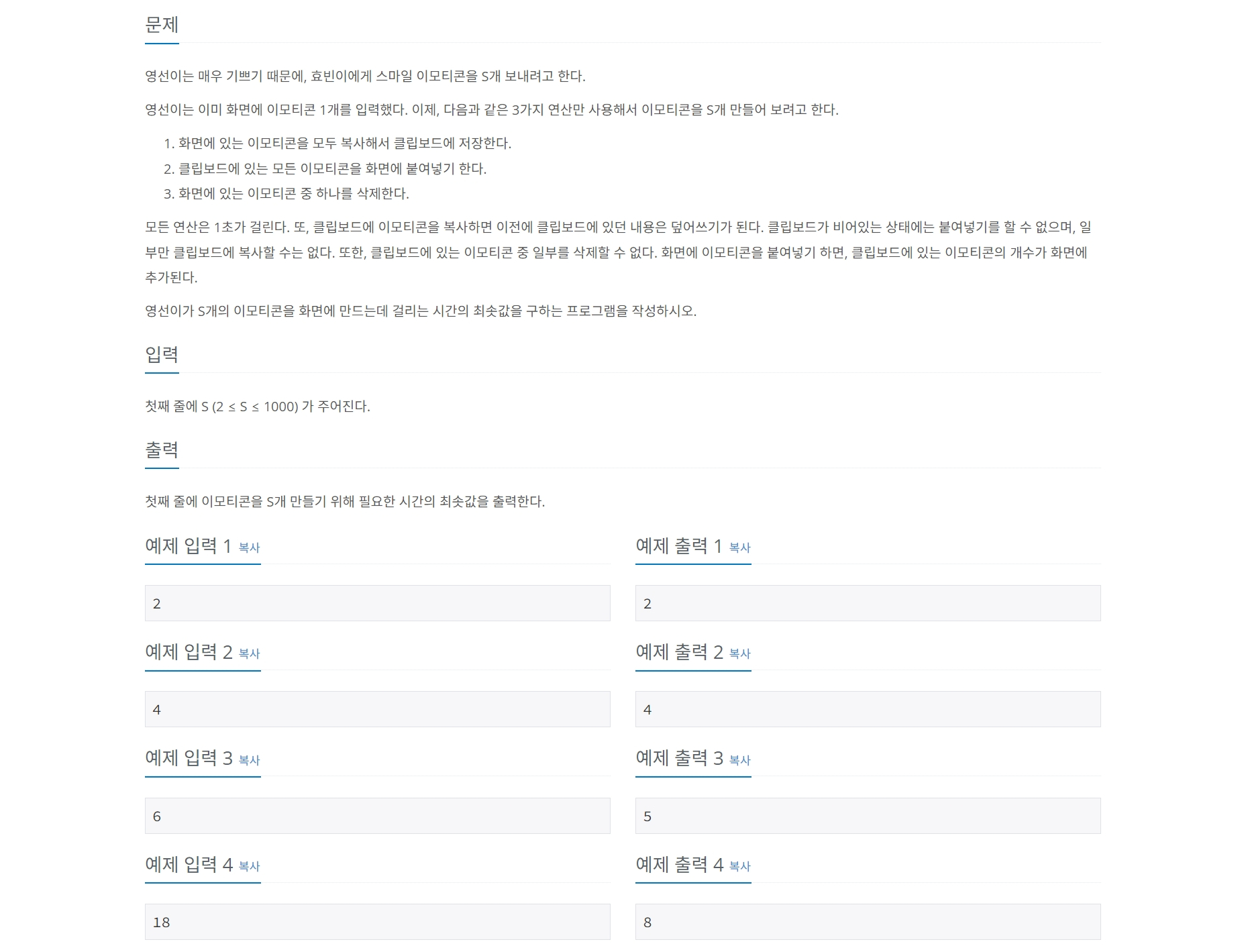 14226번: 이모티콘