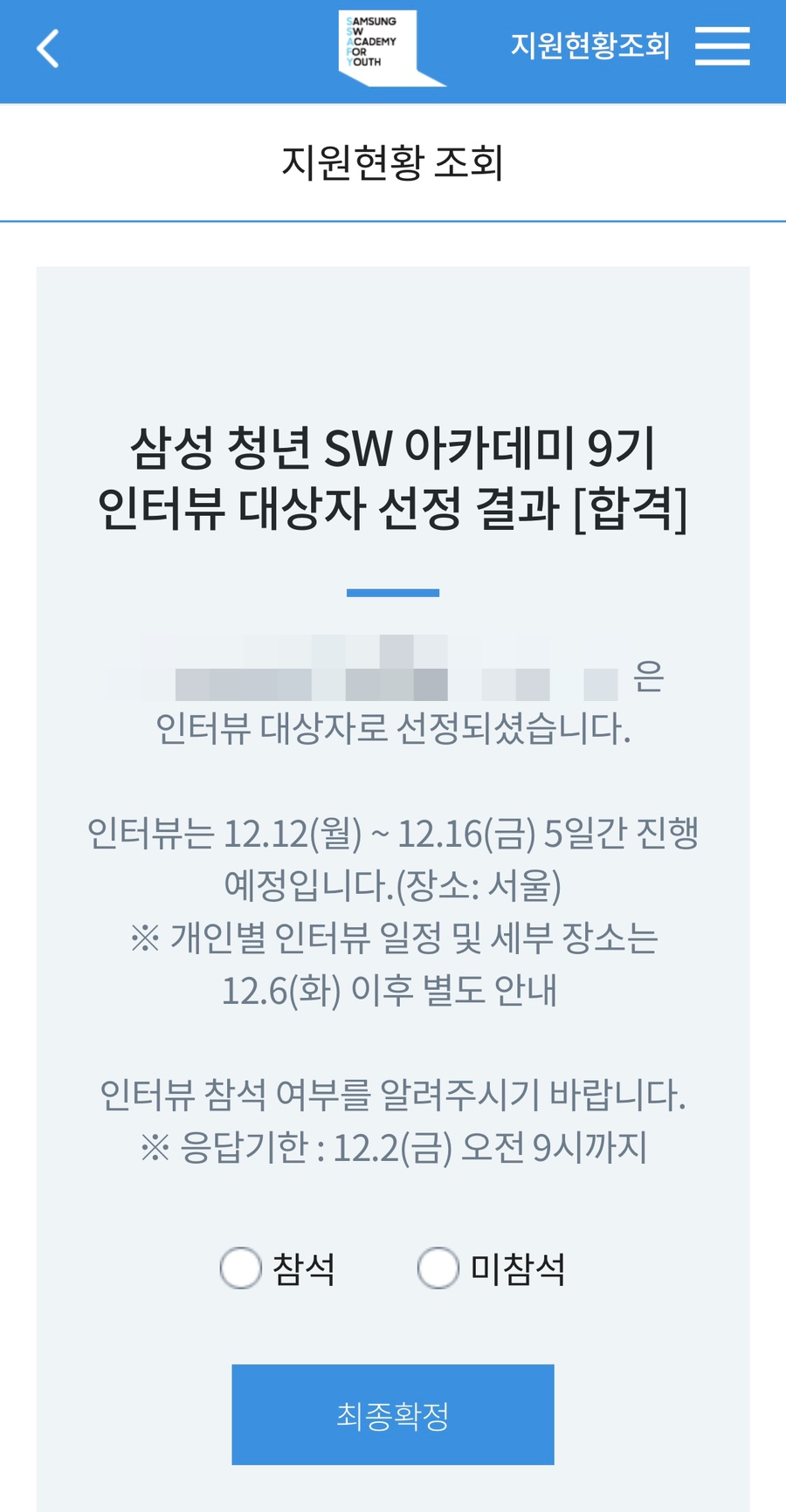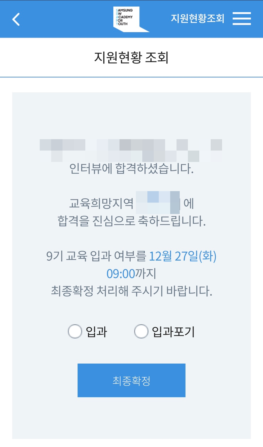 최종 합격이라는 결과를 받았고 너무 기뻤습니다.