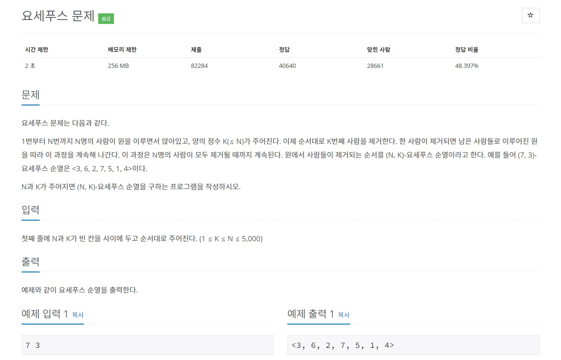 첫째 줄에 N과 K가 빈 칸을 사이에 두고 순서대로 주어진다. (1 ≤ K ≤ N ≤ 5,000)