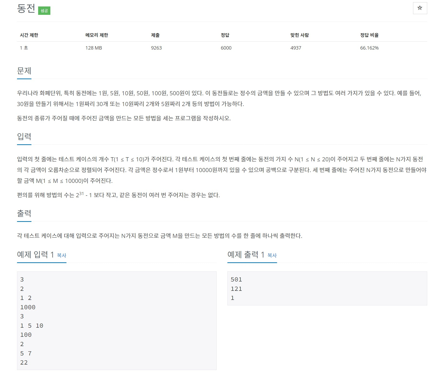 9084번: 동전