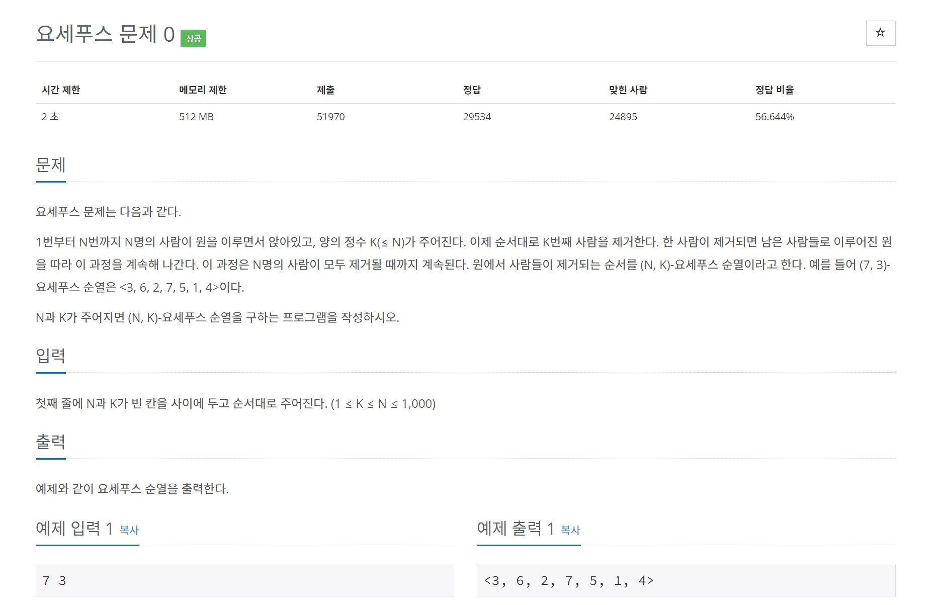 K번째가 되기 전의 정수는 큐에서 빼서 바로 다시 큐에 넣고, K번째 사람은 빼서 출력하면 된다.