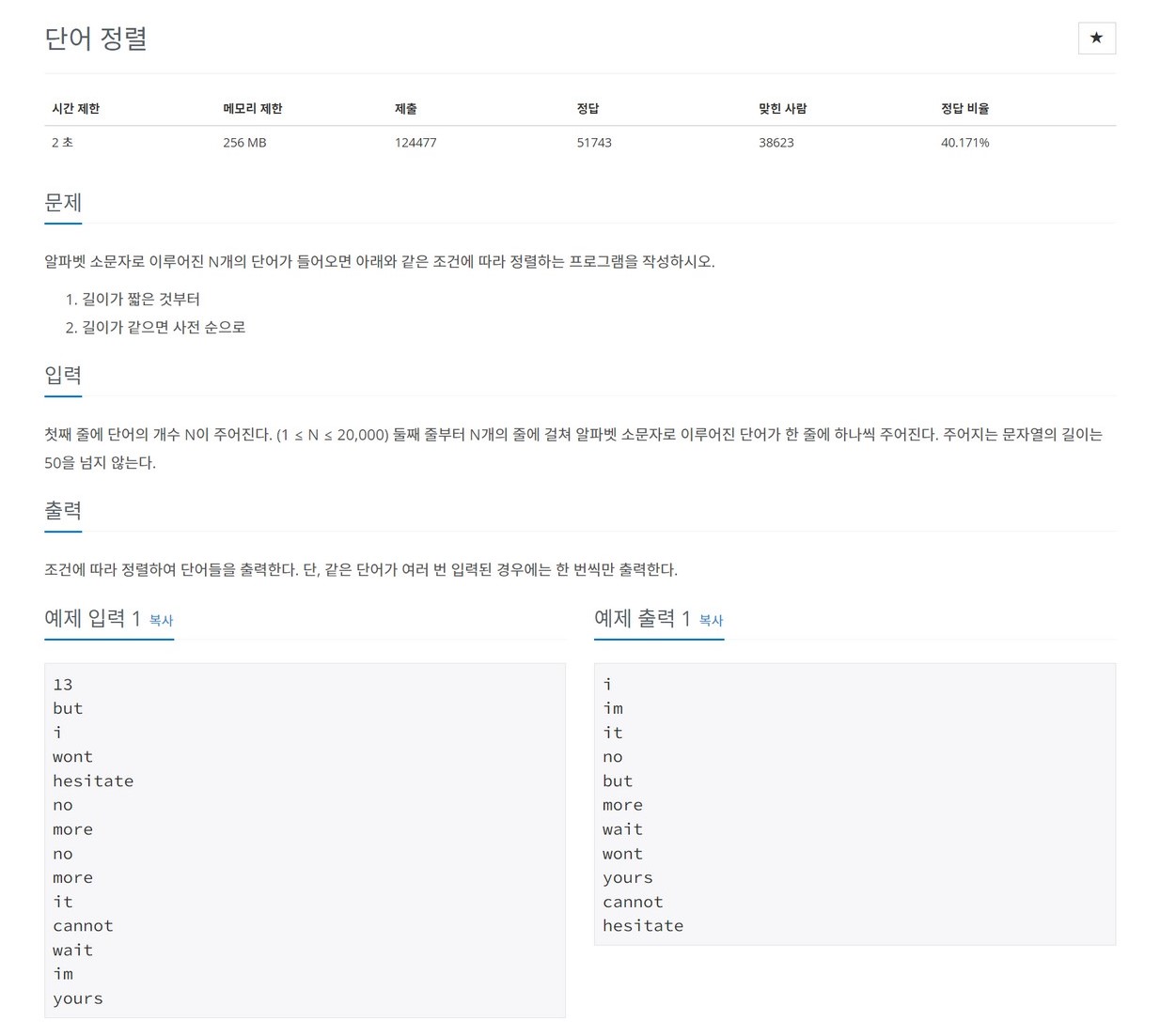 1181번: 단어 정렬