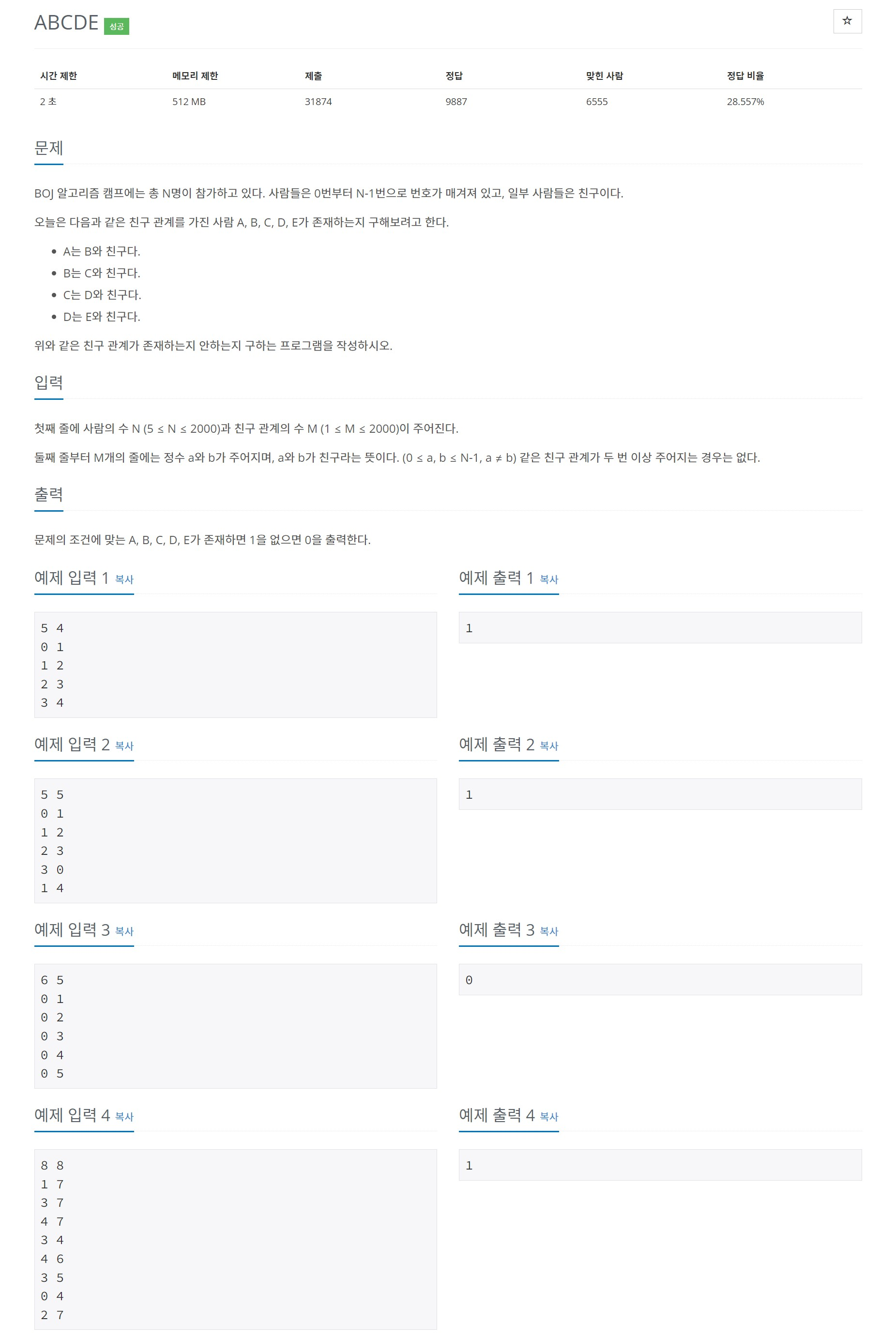 문제의 조건에 맞는 A, B, C, D, E가 존재하면 1을 없으면 0을 출력한다.