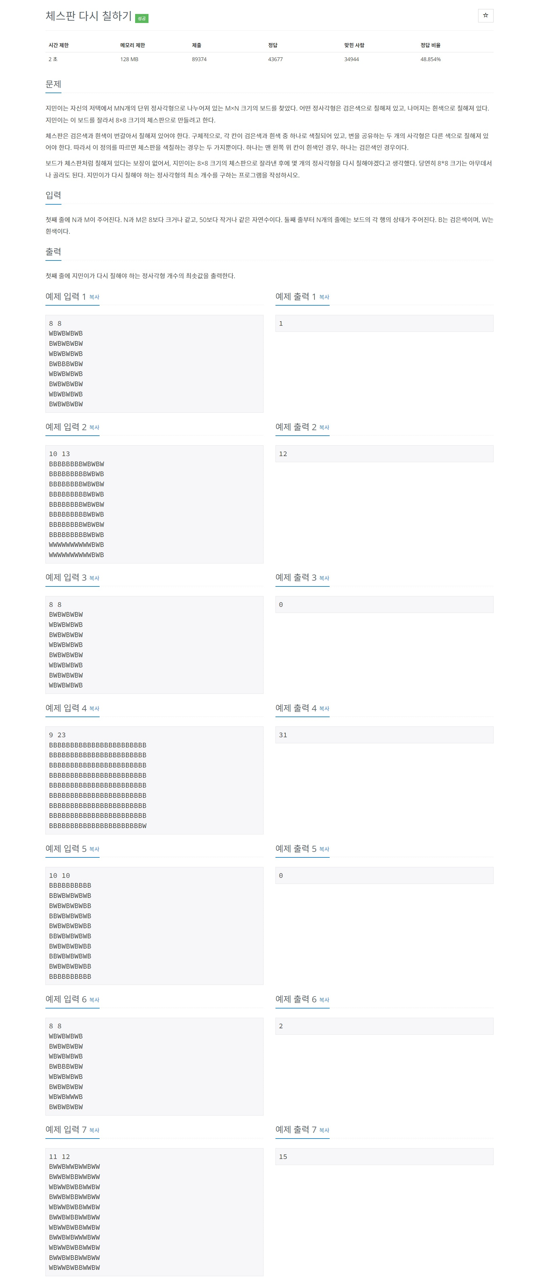 1018번: 체스판 다시 칠하기
